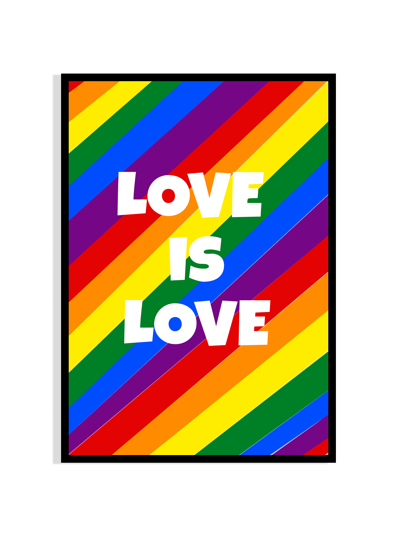Celebrate authenticity, unity, and bold expression with our “Love is Love” Rainbow Poster. Featuring vibrant diagonal stripes in the colors of the Pride flag, this art piece makes a powerful and joyful statement in any space. Whether you hang it in your living room, bedroom, or office, it radiates positivity and inclusivity. Printed with rich color detail and framed in a sleek black border, it’s a perfect tribute to the LGBTQ+ community and a reminder that love knows no boundaries.