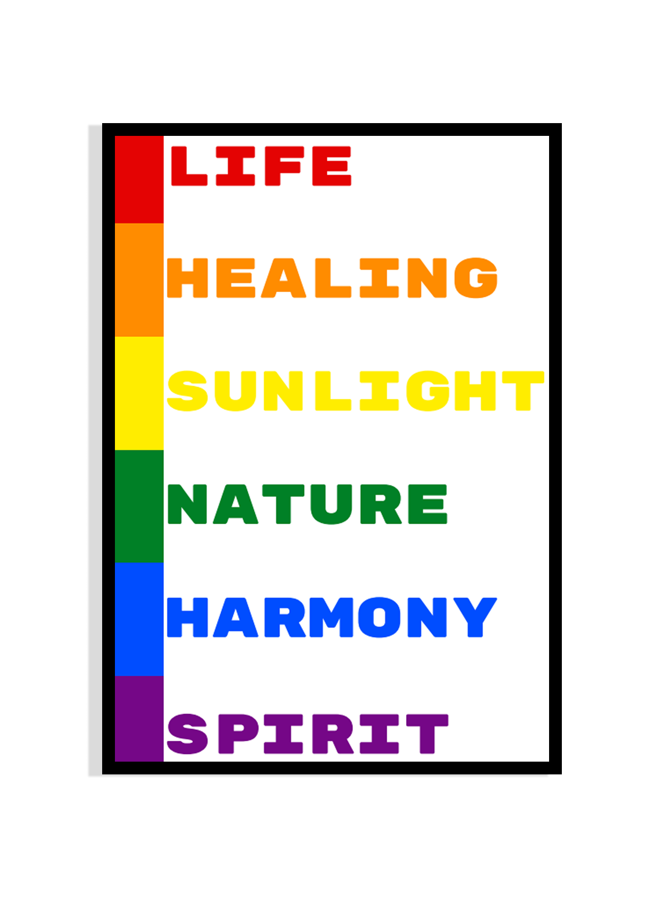 Celebrate the deeper meaning behind the Pride flag with this vibrant and educational framed art print. Featuring the iconic rainbow stripes alongside their powerful meanings — Life, Healing, Sunlight, Nature, Harmony, Spirit — this artwork is a tribute to the values that unite and uplift the LGBTQ+ community.