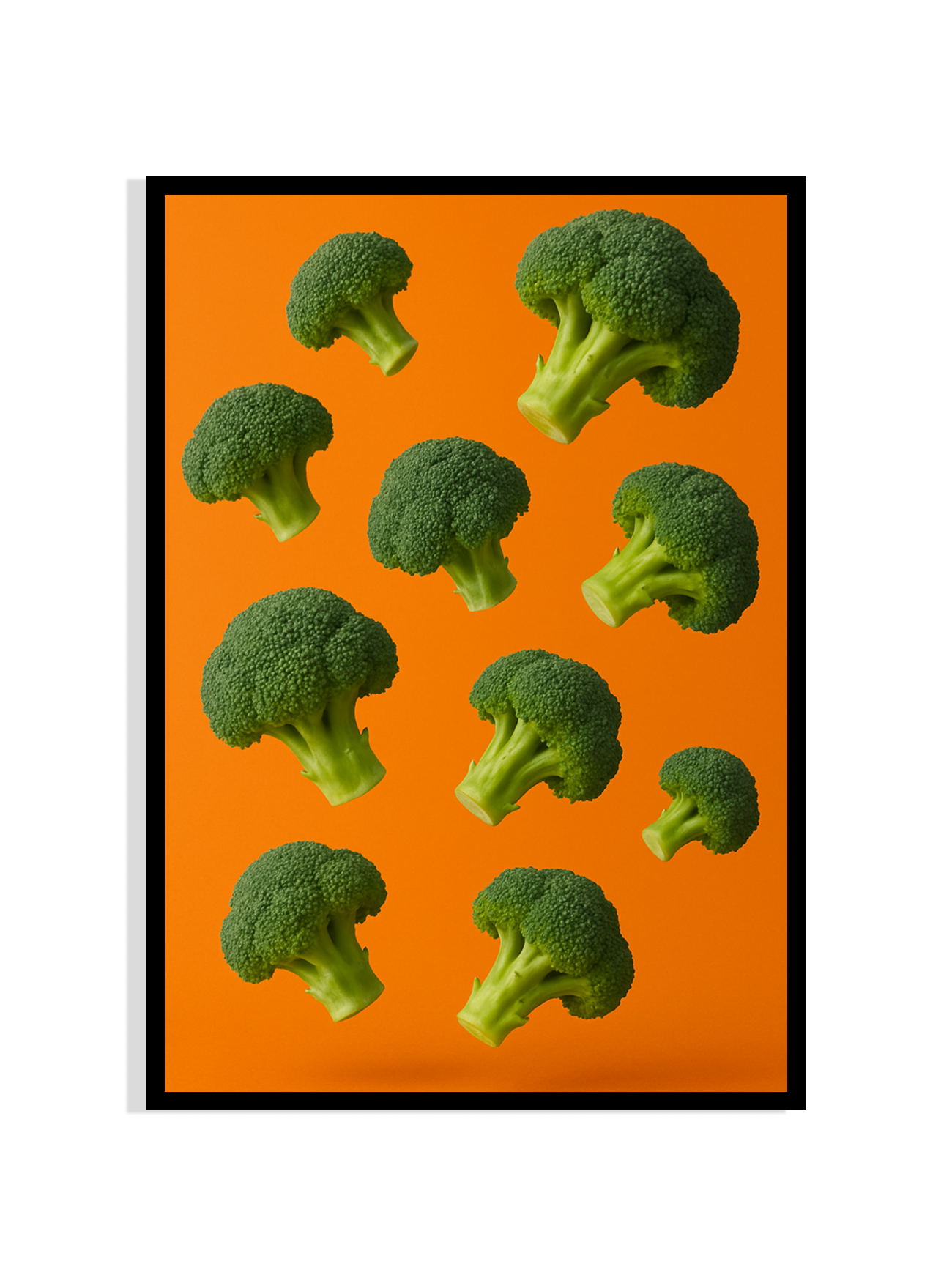 Who knew broccoli could be this bold? Add a punch of playful color to your kitchen with this high-impact framed print featuring crisp green florets dancing against a vivid orange background. Perfect for food lovers and design enthusiasts alike, this artwork brings fresh energy and a hint of humor to any culinary space.