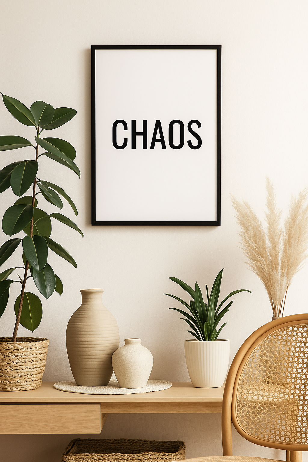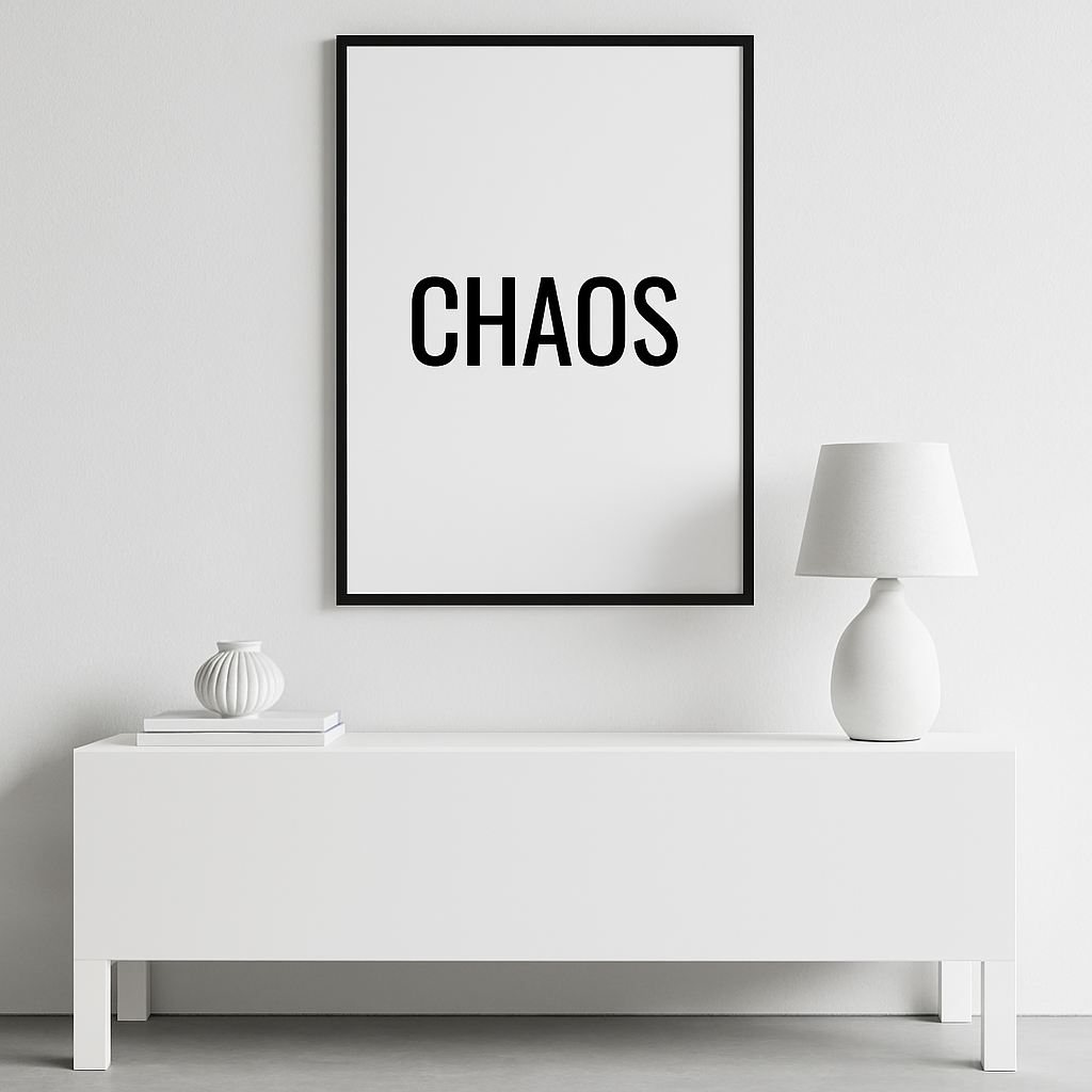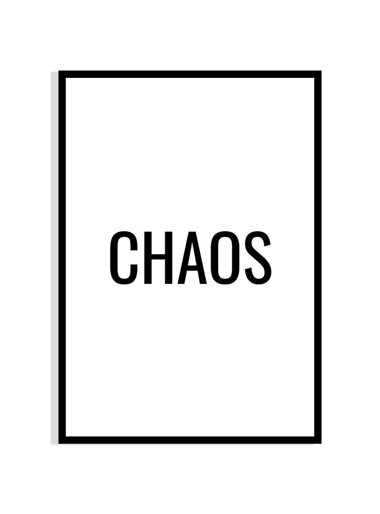 Introduce a striking contrast to your space with our "CHAOS" typography print – a bold and unapologetic statement piece for modern minds. Whether interpreted as a reflection of creative energy, life’s unpredictability, or personal rebellion, this minimalist A4 print is sure to spark conversation. Printed in crisp black on white and framed in a clean black border, it's the perfect piece to anchor a monochrome, industrial, or contemporary setting.