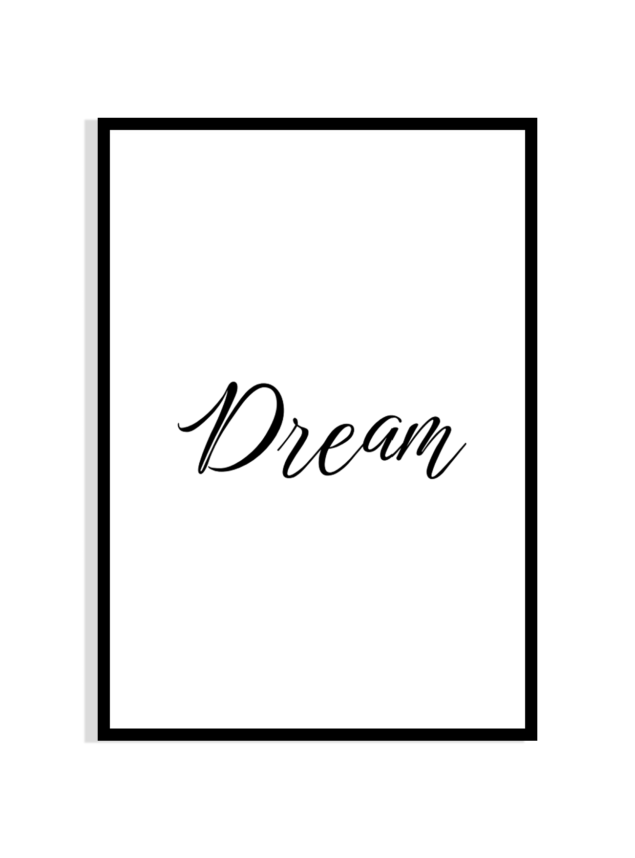 Bring calm inspiration to your space with our Dream minimalist wall art. Designed in elegant cursive typography, this black and white print is perfect for bedrooms, home offices, or creative corners. A simple yet powerful reminder to keep dreaming, this piece adds a touch of modern elegance to any wall. Professionally printed and framed with a sleek black border for a clean, timeless look.