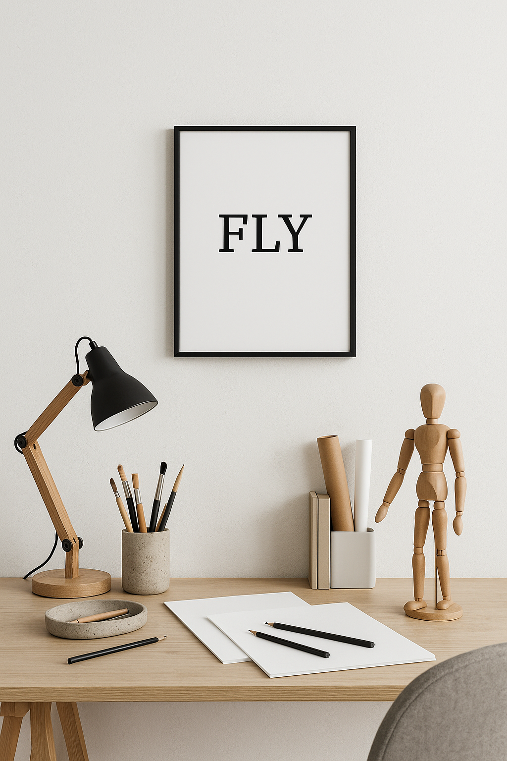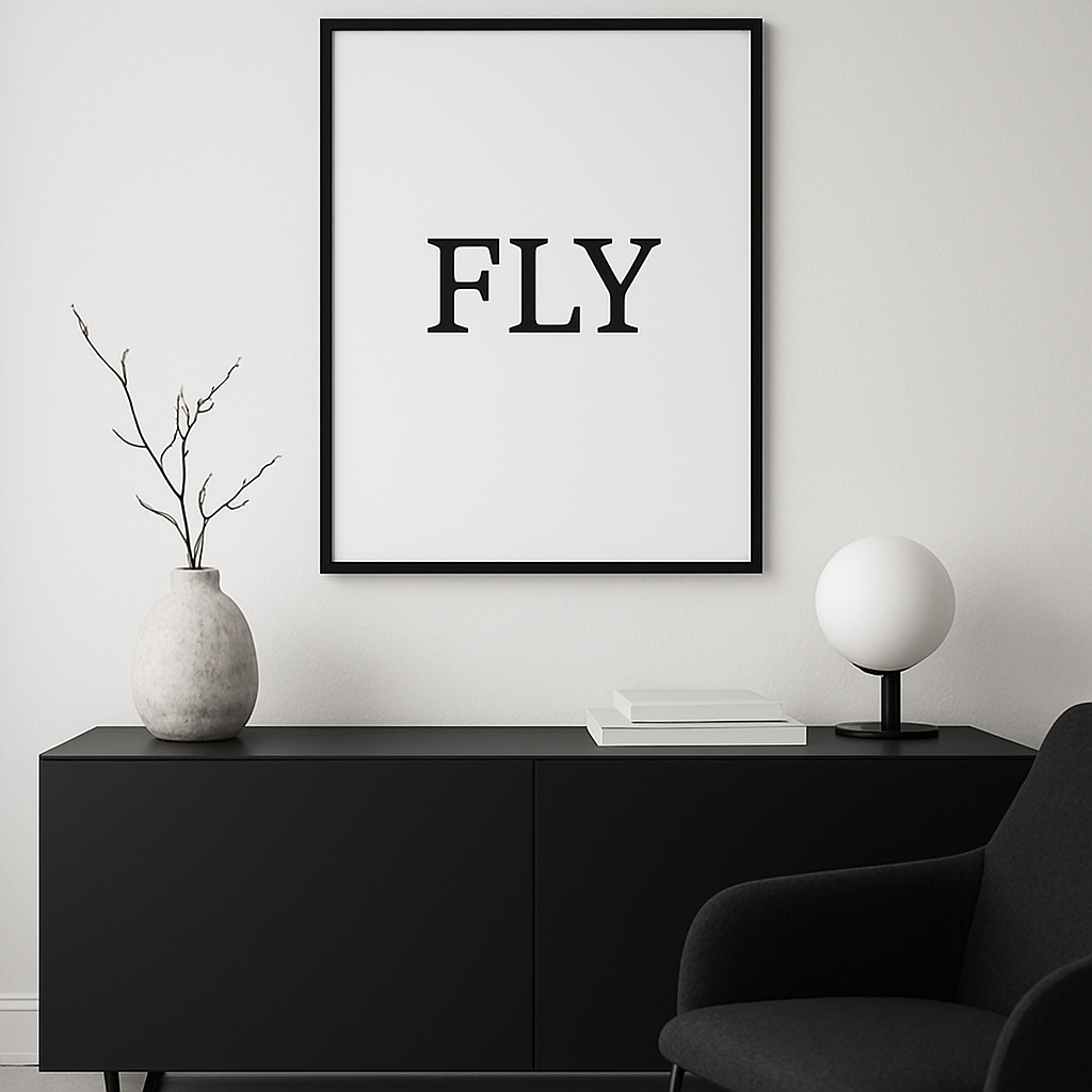 Elevate your wall space with our bold "FLY" typography print – a reminder to rise above the ordinary and chase your dreams. Designed in a timeless serif font and centered within a sleek A4 black frame, this artwork blends minimalist design with motivational impact. Perfect for creative studios, modern interiors, or monochrome spaces, it adds both aesthetic value and inspiration to your decor.