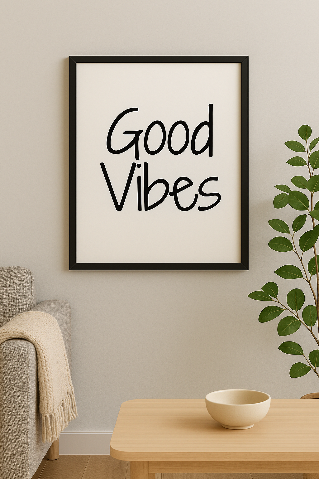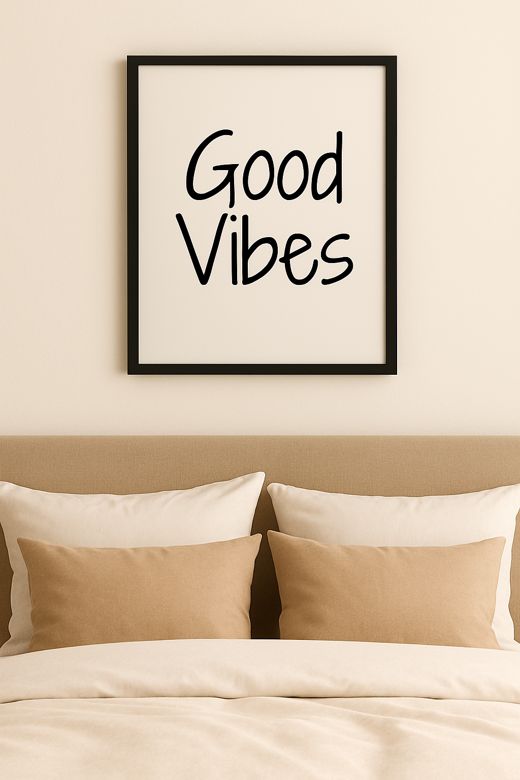 Start your day on a bright note. Our Good Vibes Typography Print is a simple reminder to stay positive and radiate energy wherever you are. With its playful handwritten font and clean design, this framed print fits perfectly in bedrooms, living spaces, common areas, or any room that needs a dose of optimism.