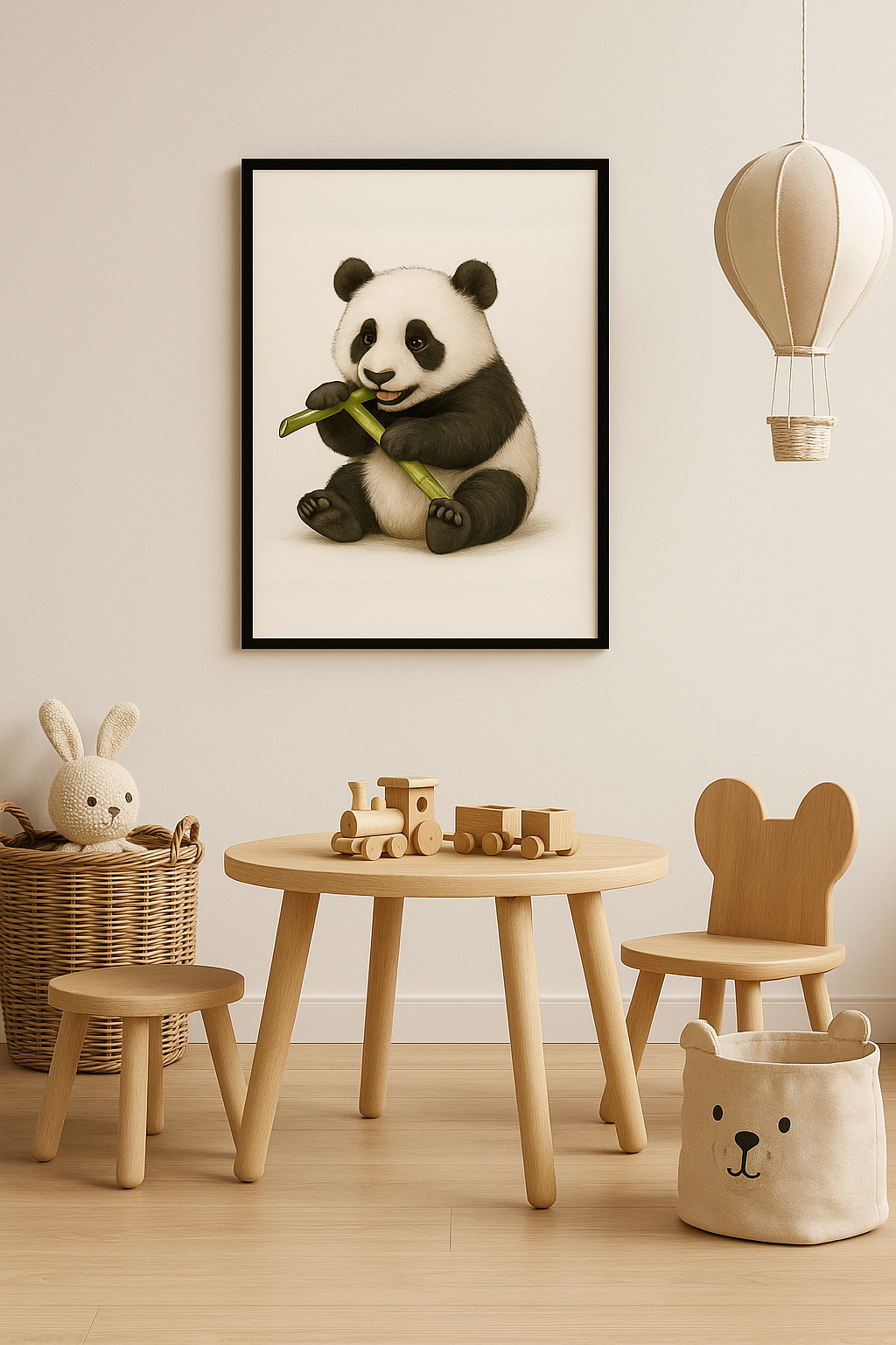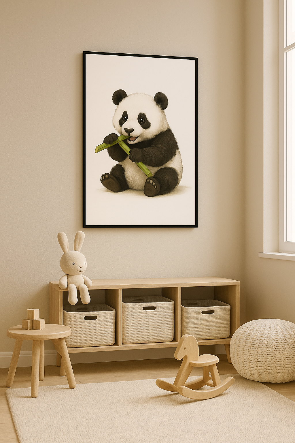 Bring charm and playfulness to your child’s space with this adorable wall art featuring a baby panda nibbling on bamboo. Perfect for nurseries, playrooms, or as a thoughtful gift, this high-quality print adds warmth and a gentle nature-inspired touch to any kid's room. Printed on premium paper, it’s ready to frame and sure to delight young animal lovers.