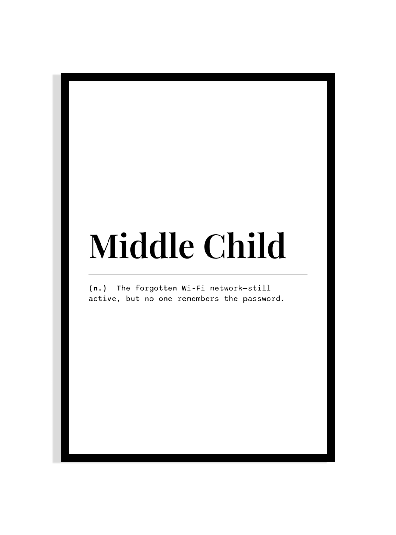 This hilarious typographic print is a must-have for anyone who knows the middle child struggle. Defined as “The forgotten Wi-Fi network—still active, but no one remembers the password,” this clever framed piece blends humor and truth in equal measure. A perfect gift for siblings, or just to poke fun at family dynamics in your own space.