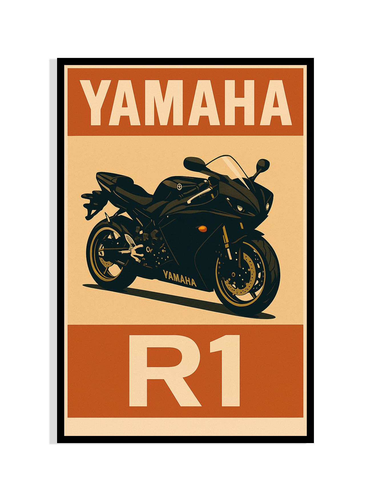 Fuel your space with speed and style. This bold Yamaha R1 poster captures the sleek power of one of the most iconic sport bikes in motorcycle history. With vintage-inspired colors and sharp graphic design, this framed piece adds an adrenaline-charged edge to any room — perfect for teens, riders, and motorsport fans. A tribute to speed, design, and machine culture.