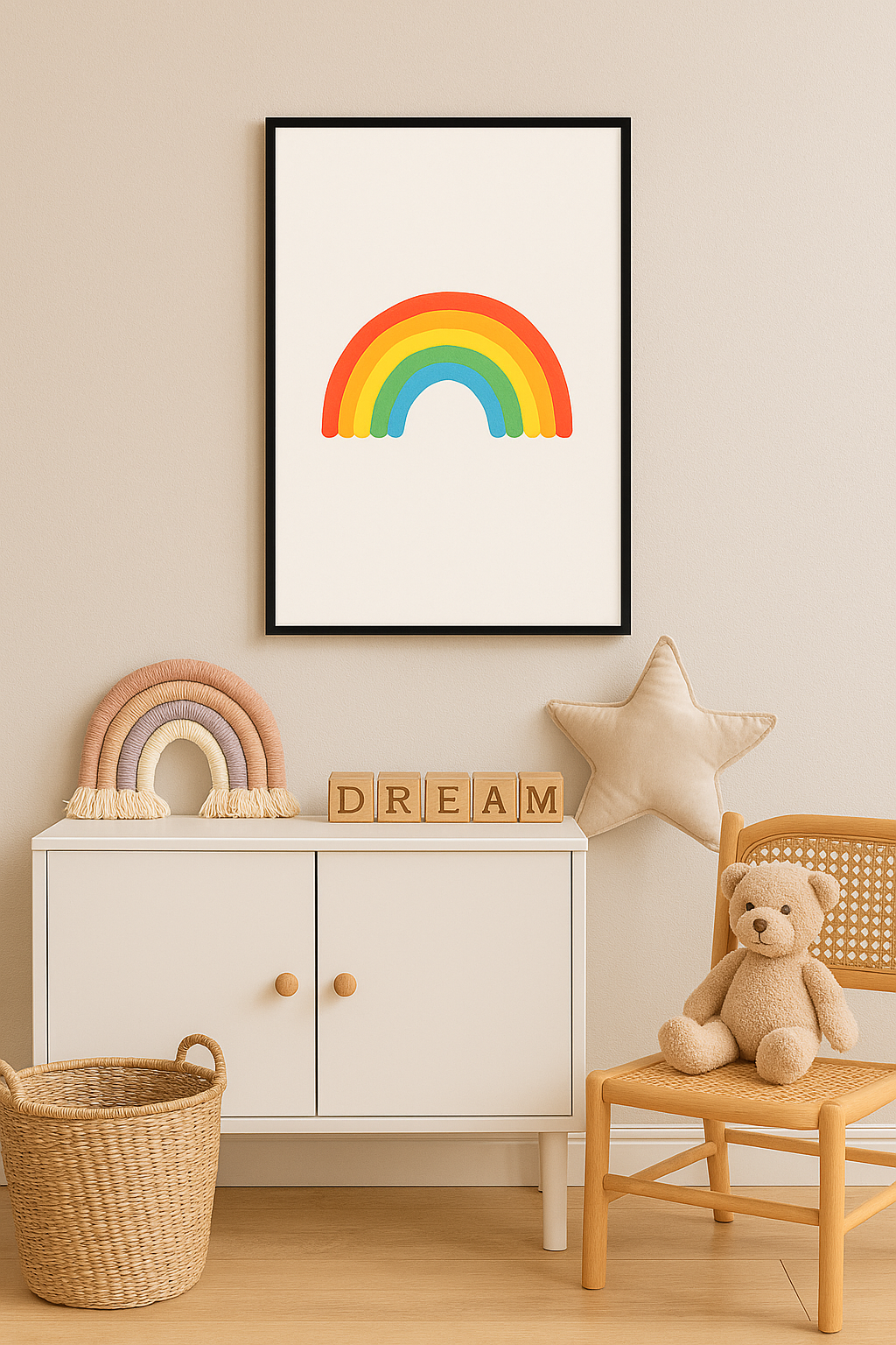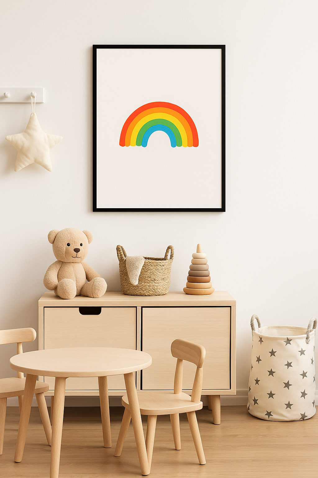 Bring sunshine and smiles to your child’s space with our Bright Rainbow wall art! This vibrant and cheerful print features a bold rainbow on a clean background, perfect for sparking joy and imagination in nurseries, playrooms, or reading corners. Its simple, happy design fits beautifully into both modern and colorful interiors.