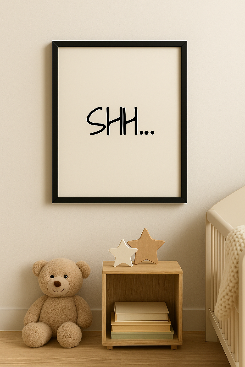 Quiet, please — the SHH... Typography Print brings a playful yet practical reminder to any room. With its casual handwritten style and minimalist design, this framed artwork is perfect for kids’ rooms, home offices, nurseries, or even meeting rooms where silence speaks volumes.